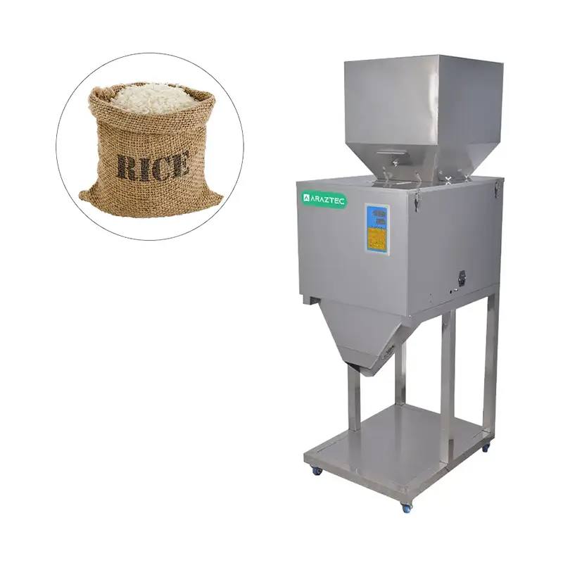 دستگاه پرکن FP24مناسب انواع مواد پودری وگرانولی 100 الی 1000 گرم در تمامی صنایع غذایی، شیمیایی، آرایشی و بهداشتی، دارویی و … در بسته های یکبارمصرف کاربرد دارد. • دستگاه FP24 توزینی بوده و میزان وزن مورد نیاز تا 1000 گرم را میتوان توسط پنل دیجیتالی موجود بر روی دستگاه تنظیم کرد. • دقت وزنی که میتوانیم برای آن تعیین کنیم 1 گرم است، یعنی میتوان برای یک بسته 501 گرم را تنظیم نمود. • این دستگاه را میشود با سه سرعت آرام، متوسط و سریع با توجه به نوع مواد انتخاب کرد، به طور مثال توزین مواد گرانولی مثل نمک را میتوان با سرعت پایین که دقت بیشتری دارد و مواد پودری مانند آرد را با سرعت بالاتر که تعداد بسته بیشتر در زمان کمتر را برای ما فراهم میکند انجام داد. • در قسمت بالایی دستگاه بعد از تنظیمات لازم مواد از طریق یقه وارد ظرف مورد نظر میشود. • این دستگاه نیمه اتومات بوده و نیاز به یک اپراتور برای تنظیم دستگاه دارد. • دستگاه دارای بک پدال است که با هربار فشار دادن آن توسط اپراتور میزان تنظیم شده وارد ظرف میشود. • قابلیت آسان برای استفاده با هر نوع ظرف مانند: 1) ظروف شیشه ای و پلاستیکی 2) پاکت 3) نایلون و … • این دستگاه دارای کلید تخلیه بوده و به راحتی تمام مواد داخل دستگاه با توجه به صلاح دید اپراتور میتواند خالی شود. مزیت های دستگاه : کارکرد 24 ساعته دستگاه کار کردن بسیار راحت با دستگاه توسط اپراتور قابلیت دریافت تمامی مجوزهای غذا دارو به دلیل جنس بدنه (استیل 304 غذایی ) صدای بسیار کم قابل استفاده در کارگاه ها های کوچک تا کارخانه های بزرگ دارای پالت چوبی برای حمل و نقل راحت و ایمن دستگاه قابل استفاده برای محصولات پودری و گرانولی 1 سال گارانتی بی غید و شرط و 10 سال خدمات پس از فروش دستگاه ها قبل از تحویل به مشتری تست شده و کنترل کیفی روی آن صورت میگیرد آموزش نحوه راه اندازی، نگه داری و استفاده از دستگاه سوالات متداول : 1) آیا از این دستگاه برای موادهای مختلف استفاده کرد؟ بله دستگاه به راحتی توسط اپراتور تمییز میشود و به دلیل جنس بدنه میشود بسته بندی کاملا بهداشتی داشت 2) آیا این دستگاه در خانه قابل استفاده است؟ بله این دستگاه به دلیل وزن مناسب و صدای بسیار کم قابل استفاده در هر فضایی حتی خانه است.