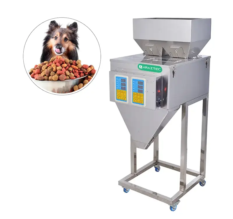 دستگاه پرکن FP23مناسب انواع مواد پودری وگرانولی 30 الی 3000 گرم در تمامی صنایع غذایی، شیمیایی، آرایشی و بهداشتی، دارویی و … در بسته های یکبارمصرف کاربرد دارد. • دستگاه FP23 توزینی بوده و میزان وزن مورد نیاز تا 3000 گرم را میتوان توسط پنل دیجیتالی موجود بر روی دستگاه تنظیم کرد. • دقت وزنی که میتوانیم برای آن تعیین کنیم 1 گرم است، یعنی میتوان برای یک بسته 1001 گرم را تنظیم نمود. • این دستگاه را میشود با سه سرعت آرام، متوسط و سریع با توجه به نوع مواد انتخاب کرد، به طور مثال توزین مواد گرانولی مثل نمک را میتوان با سرعت پایین که دقت بیشتری دارد و مواد پودری مانند آرد را با سرعت بالاتر که تعداد بسته بیشتر در زمان کمتر را برای ما فراهم میکند انجام داد. • در قسمت بالایی دستگاه بعد از تنظیمات لازم مواد از طریق یقه وارد ظرف مورد نظر میشود. • این دستگاه نیمه اتومات بوده و نیاز به یک اپراتور برای تنظیم دستگاه دارد. • دستگاه دارای بک پدال است که با هربار فشار دادن آن توسط اپراتور میزان تنظیم شده وارد ظرف میشود. • قابلیت آسان برای استفاده با هر نوع ظرفی دارد. مانند: 1) ظروف شیشه ای و پلاستیکی 2) پاکت 3) نایلون و … • این دستگاه دارای کلید تخلیه بوده و به راحتی تمام مواد داخل دستگاه با توجه به صلاح دید اپراتور میتواند خالی شود.