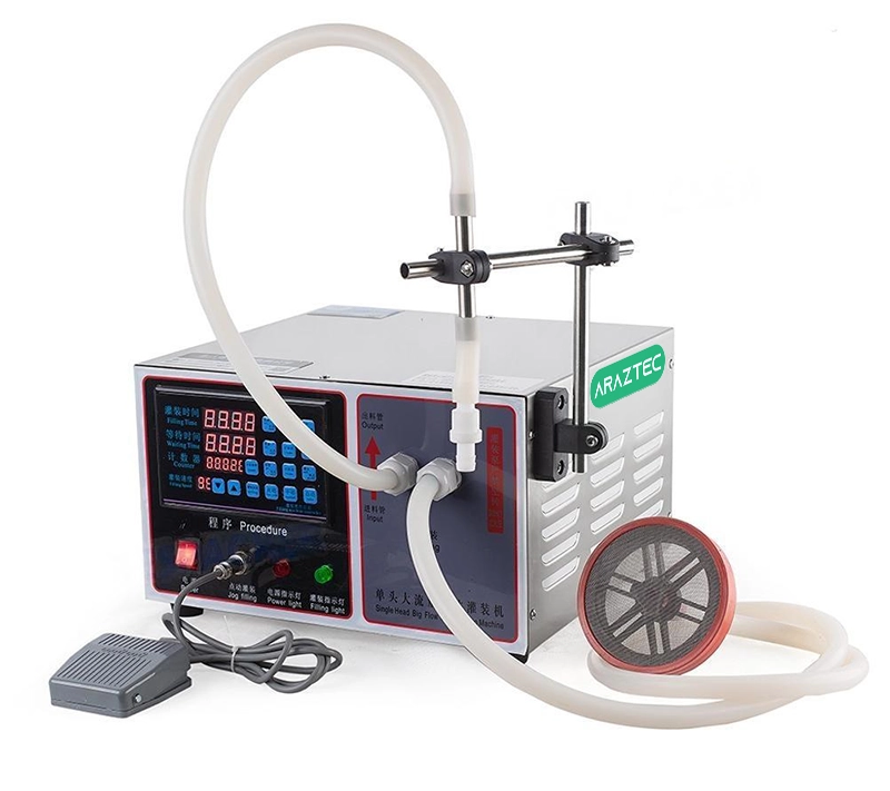 توضیحات دستگاه پر کن دیجیتال مایع تک نازل مدل F26 دستگاه پر کن دیجیتال مایع تک نازل مدل F26چه مشخصه ها و ویژگی هایی را دارد؟ از این دستگاه در چه مواردی می توان استفاده کرد؟ در این مقاله قصد داریم که به ارائه اطلاعاتی در رابطه با یکی از بهترین دستگاه های پرکن، یعنی دستگاه پر کن دیجیتال مایع تک نازل مدل F26 بپردازیم اگر قصد خرید این دستگاه را دارید و می خواهید پیش از خرید در مورد آن اطلاعاتی را بدست آورید تا انتهای مقاله ما را همراهی کنید. دستگاه پر کن دیجیتال مایع تک نازل مدل F26 امروزه دستگاه های پرکن بسیار محبوب هستند چرا که با استفاده از آن ها می توان در مدت زمان بسیار کوتاهی مایعات مختلف را در ظروف با ابعاد مختلف پر کرد. انواع دستگاه های پرکن دیجیتال مایع به دو نوع تک نازل و دو نازل تقسیم بندی می شوند که دستگاه پر کن دیجیتال مایع تک نازل مدل F26 یکی از با کیفیت ترین دستگاه پرکن با یک نازل است. این دستگاه کارآیی بالایی را دارد و با استفاده از آن می توان مایعات مختلفی را که ویسکوزیته پایینی دارند را پر کرد که از جمله آنها می توانیم به آب، روغن، انواع عرقیجات، اسانس، عطر و … اشاره داشته باشیم. همچنین در صورتی که از دستگاه پر کن دیجیتال مایع تک نازل مدل F26 استفاده کنید محدودیت از لحاظ ابعاد، اندازه دهانه، ظرفیت و نوع ظروف وجود ندارد و در واقع می تواند برای تمامی ظرف ها مورد استفاده قرار بگیرد. این دستگاه برای فعالیت خود فقط به یک اپراتور نیاز دارد طراحی آن به گونه ای صورت پذیرفته است که به آسانی بتوان از آن استفاده کرد. دستگاه دیجیتال مایع پر کن تک نازل مدل F26 امکانات و ویژگی های زیادی دارد که از جمله آن ها می توانیم به دقت بسیار بالا در پرکردن اشاره داشته باشیم. همچنین این دستگاه مجهز به صفحه نمایش است که می توان با استفاده از این تنظیمات را انجام داد و دستگاه را کنترل کرد. همچنین در این دستگاه سرعت، میزان و حجم خروجی مایعات قابل تنظیم است. این دستگاه را پس از استفاده به آسانی می توانید تمیز کنید. مناسب برای استفاده در مکان های مختلف از مهم ترین مزیت های دستگاه پر کن دیجیتال مایع تک نازل مدل F26 این است که می توان آن را در مکان های مختلف مورد استفاده قرار داد. دلیل این مهم این است که این دستگاه به دلیل داشتن ابعاد مناسب ، جای زیادی را اشغال نمی کند و همچنین وزن آن سبک است و تولید صدای بسیاری کمی نیزد دارد. با استفاده از برق خانگی می توان آن را راه اندازی کرد و برای استفاده از بسیار از مایعات مناسب است. مشخصات کلی دستگاه پر کن دیجیتال مایع یک نازل برای دستگاه دیجیتال مایع پر کن تک نازل مدل F26 حداقل رنجی که وجود دارد 5 میلی لیتر است و جداکثر آن نیز 7000میلی لیتر است. تعداد نازل های آن برای پرکردن ظرف یک نازل است و عملکرد آن نیز با برق تک فاز 220 وات امکانپذیر است برای ساخت بدنه آن نیز از استیل استفاده شده است. مشخصات دستگاه: دارای نمایشگر دیجیتال جهت کنترل و تنظیم دستگاه سیستم دستگاه پرکن دقت پر کنندگی بالایی دارد دستگاه دارای یک نازل پرکن است جنس بدنه تمام استیل طراحی مهندسی با کارکرد بسیار آسان توسط اپراتور قادر به پر کردن از حجم 5 الی 7000 سی سی سرعت پرکردن مایع بصورت دیجیتال قابل تنظیم است که این امر از پاشش مایع جلوگیری میکند دستگاهی ایده آل برای پر کردن مایعات رقیق با ویسکوزیته پایین مثل آب، روغن، عرقیجات، اسانس، عطر و غیره میباشد دستگاه قادر به پرکردن در هر ظرفی میباشد. جنس ظرف، ابعاد دهانه ورودی ظرف و شکل آن اهمیتی ندارد. دارای سیستم اتومات و منوال با توجه به ابعاد مناسب، وزن کم، کارکرد کم صدا و آسان دستگاه قابلیت استفاده از این دستگاه در منازل، فروشگاه ها و کارگاه ها میسر است تمیز کردن و مراقبت بسیار آسان راه اندازی و کارکرد بسیار ساده و راحت بسیار کم صدا سیستم برق مورد نیاز تک فاز 220 ولت میباشد. قابلیت شمارش خودکار وکنترل تعداد دفعات پر کردن توانایی ذخیره چندین برنامه پرکردن در حافظه آن جهت سهولت کارکرد ا