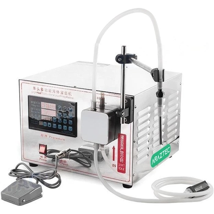 توضیحات دستگاه پرکن دیجیتال مایعات رقیق تک نازل تا 3.5 لیتر پمپ دنده ای مدل F23 دستگاه پر کن دیجیتال مایع تک نازل مدل F23 چه مشخصه ها و ویژگی هایی را دارد؟ از این دستگاه در چه مواردی می توان استفاده کرد؟ در این مقاله قصد داریم که به ارائه اطلاعاتی در رابطه با یکی از بهترین دستگاه های پرکن، یعنی دستگاه پر کن دیجیتال مایع تک نازل مدل F23 بپردازیم اگر قصد خرید این دستگاه را دارید و می خواهید پیش از خرید در مورد آن اطلاعاتی را بدست آورید تا انتهای مقاله ما را همراهی کنید. دستگاه پر کن دیجیتال مایع تک نازل مدل F23 امروزه دستگاه های پرکن بسیار محبوب هستند چرا که با استفاده از آن ها می توان در مدت زمان بسیار کوتاهی مایعات مختلف را در ظروف با ابعاد مختلف پر کرد. انواع دستگاه های پرکن دیجیتال مایع به دو نوع تک نازل و دو نازل تقسیم بندی می شوند که دستگاه پر کن دیجیتال مایع تک نازل مدل F23 یکی از با کیفیت ترین دستگاه پرکن با یک نازل است. این دستگاه کارآیی بالایی را دارد و با استفاده از آن می توان مایعات مختلفی را که ویسکوزیته پایینی دارند را پر کرد که از جمله آنها می توانیم به آب، روغن، انواع عرقیجات، اسانس، عطر و … اشاره داشته باشیم. همچنین در صورتی که از دستگاه پر کن دیجیتال مایع تک نازل مدل F23 استفاده کنید محدودیت از لحاظ ابعاد، اندازه دهانه، ظرفیت و نوع ظروف وجود ندارد و در واقع می تواند برای تمامی ظرف ها مورد استفاده قرار بگیرد. این دستگاه برای فعالیت خود فقط به یک اپراتور نیاز دارد طراحی آن به گونه ای صورت پذیرفته است که به آسانی بتوان از آن استفاده کرد. دستگاه دیجیتال مایع پر کن تک نازل مدل F23 امکانات و ویژگی های زیادی دارد که از جمله آن ها می توانیم به دقت بسیار بالا در پرکردن اشاره داشته باشیم. همچنین این دستگاه مجهز به صفحه نمایش است که می توان با استفاده از این تنظیمات را انجام داد و دستگاه را کنترل کرد. همچنین در این دستگاه سرعت، میزان و حجم خروجی مایعات قابل تنظیم است. این دستگاه را پس از استفاده به آسانی می توانید تمیز کنید. مناسب برای استفاده در مکان های مختلف از مهم ترین مزیت های دستگاه پر کن دیجیتال مایع تک نازل مدل F23 این است که می توان آن را در مکان های مختلف مورد استفاده قرار داد. دلیل این مهم این است که این دستگاه به دلیل داشتن ابعاد مناسب ، جای زیادی را اشغال نمی کند و همچنین وزن آن سبک است و تولید صدای بسیاری کمی نیزد دارد. با استفاده از برق خانگی می توان آن را راه اندازی کرد و برای استفاده از بسیار از مایعات مناسب است. مشخصات کلی دستگاه پر کن دیجیتال مایع یک نازل برای دستگاه دیجیتال مایع پر کن تک نازل مدل F23 حداقل رنجی که وجود دارد 5 میلی لیتر است و جداکثر آن نیز 3500 میلی لیتر است. تعداد نازل های آن برای پرکردن ظرف یک نازل است و عملکرد آن نیز با برق تک فاز 220 وات امکانپذیر است برای ساخت بدنه آن نیز از استیل استفاده شده است. مشخصات دستگاه: دارای نمایشگر دیجیتال جهت کنترل و تنظیم دستگاه سیستم دستگاه پرکن دقت پر کنندگی بالایی دارد دستگاه دارای یک نازل پرکن است جنس بدنه تمام استیل طراحی مهندسی با کارکرد بسیار آسان توسط اپراتور قادر به پر کردن از حجم 5 الی 3500 سی سی سرعت پرکردن مایع بصورت دیجیتال قابل تنظیم است که این امر از پاشش مایع جلوگیری میکند دستگاهی ایده آل برای پر کردن مایعات رقیق با ویسکوزیته پایین مثل آب، روغن، عرقیجات، اسانس، عطر و غیره میباشد دستگاه قادر به پرکردن در هر ظرفی میباشد. جنس ظرف، ابعاد دهانه ورودی ظرف و شکل آن اهمیتی ندارد. دارای سیستم اتومات و منوال با توجه به ابعاد مناسب، وزن کم، کارکرد کم صدا و آسان دستگاه قابلیت استفاده از این دستگاه در منازل، فروشگاه ها و کارگاه ها میسر است تمیز کردن و مراقبت بسیار آسان راه اندازی و کارکرد بسیار ساده و راحت بسیار کم صدا سیستم برق مورد نیاز تک فاز 220 ولت میباشد. قابلیت شمارش خودکار وکنترل تعداد دفعات پر کردن توانایی ذخیره چندین برنامه پرکردن د