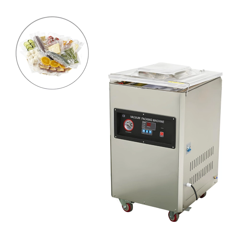 دستگاه بسته بندی وکیوم صنعتی مدل V4 یک راهکار حرفهای و کامل برای حفظ تازگی محصولات و افزایش ماندگاری آنها است. این دستگاه با پمپ پرقدرت ۹۰۰ واتی، دو نوار دوخت ۱۰ میلیمتری با عرض ۴۰ سانتیمتر و بدنه تمام استیل ضدزنگ ۳۰۴، بستهبندی ایمن، دقیق و سریع را برای انواع مواد غذایی، دارویی، شیمیایی و صنعتی فراهم میکند. سیستم تماماتوماتیک دستگاه تمامی مراحل تخلیه هوا، دوخت، خنکسازی و خروج نهایی را به صورت خودکار انجام میدهد، بنابراین اپراتور تنها با قرار دادن محصول در محفظه و بستن درب، بستهبندی با کیفیت و یکنواخت دریافت میکند. کاربردهای دستگاه بسته بندی وکیوم صنعتی ایستاده دوخت ۴۰ سانتی متری مدل V4 دستگاه بستهبندی وکیوم صنعتی مدل V4، مناسب انواع محصولات است که نیاز به حفظ تازگی، جلوگیری از اکسیداسیون و افزایش طول عمر دارند. این دستگاه با قابلیت تخلیه کامل هوا شرایطی ایدهآل برای نگهداری طولانیمدت محصولات ایجاد میکند. طراحی محفظه و سیستم تماماتوماتیک دستگاه باعث میشود بستهبندی با کیفیت یکنواخت و بدون نقص انجام شود. استفاده در صنایع مختلف: صنایع غذایی: مناسب برای گوشت، مرغ، ماهی، پنیر، آجیل، خشکبار، قهوه، ادویه و مواد خوراکی حساس به رطوبت و اکسیژن. این دستگاه تازگی، طعم و بافت محصولات را برای مدت طولانی حفظ میکند. صنایع دارویی و بهداشتی: بستهبندی داروها و مواد دارویی حساس به رطوبت و اکسیژن با تضمین کیفیت و محافظت از سلامت محصول. صنایع شیمیایی و آزمایشگاهی: مناسب برای نگهداری و بستهبندی مواد شیمیایی حساس به اکسیداسیون و فرار، جلوگیری از رطوبت و آلودگی. صنایع صنعتی و الکترونیکی: محافظت از قطعات صنعتی و الکترونیکی در برابر گرد و غبار، رطوبت و زنگزدگی، با تضمین امنیت در طول حمل و نقل. این دستگاه با انعطافپذیری بالا امکان استفاده از انواع کیسههای وکیوم، فیلم متالایز، فویل آلومینیومی و فیلمهای لمینتی را فراهم میکند و حتی برای بستههای ضخیم و بزرگ نیز مناسب است. ویژگیها دستگاه بسته بندی وکیوم صنعتی ایستاده دوخت ۴۰ سانتی متری مدل V4 دستگاه V4 با طراحی مهندسی و استفاده از قطعات باکیفیت، ترکیبی از قدرت، دقت، دوام و کاربری آسان را در اختیار کاربر قرار میدهد. هر ویژگی بهگونهای طراحی شده تا راندمان تولید افزایش یافته و کیفیت بستهبندی بهینه شود. پمپ وکیوم پرقدرت با توان ۹۰۰ وات پمپ صنعتی این دستگاه قادر است هوای داخل بسته را بهصورت کامل و سریع تخلیه کند و خلأ عمیقی ایجاد نماید. این ویژگی از رشد کپک، باکتری و اکسیداسیون جلوگیری میکند و تازگی، طعم و کیفیت محصول را برای مدت طولانی حفظ میکند. پمپ با کیفیت بالا و عملکرد پایدار، گزینهای مناسب برای خطوط تولید پیوسته و صنعتی است. دو نوار دوخت ۱۰ میلیمتری با عرض ۴۰ سانتیمتر دو نوار دوخت همزمان، استحکام و آببندی بستهها را تضمین میکند و مانع نفوذ مجدد هوا و رطوبت به داخل بسته میشود. عرض مناسب دوخت امکان استفاده از بستههای کوچک و متوسط را فراهم میکند و حرارت یکنواخت باعث زیبایی و دوام بستهها میشود. این طراحی برای بستهبندی محصولاتی که حساس به هوا هستند، ایدهآل است. عملکرد تماماتوماتیک و کاربری آسان دستگاه تمام مراحل وکیوم، دوخت و خنکسازی را خودکار انجام میدهد. کاربر فقط کافی است محصول را داخل کابین قرار داده و زمان هر مرحله را تنظیم کند. این ویژگی باعث کاهش خطای انسانی، افزایش سرعت و بهرهوری و تضمین کیفیت یکنواخت بستهها میشود. کابین با ابعاد ۴۲ × ۴۴ سانتیمتر و عمق ۶.۵ سانتیمتر کابین با ابعاد بهینه فضای کافی برای انواع بستهها فراهم میکند و باعث میشود هوا بهصورت یکنواخت تخلیه شود. عمق مناسب کابین، امکان قرار دادن چند بسته بهصورت همزمان را فراهم میآورد و بازدهی تولید را افزایش میدهد. طراحی مستحکم کابین از آسیب و لرزش هنگام بستهبندی جلوگیری میکند. درزگیر با چگالی بالا (High-Density Lid Gasket) نوار درزگیر از جنس مقاوم و با چگالی بالا ساخته شده تا خلأ محفظه کاملاً حفظ شود. این در