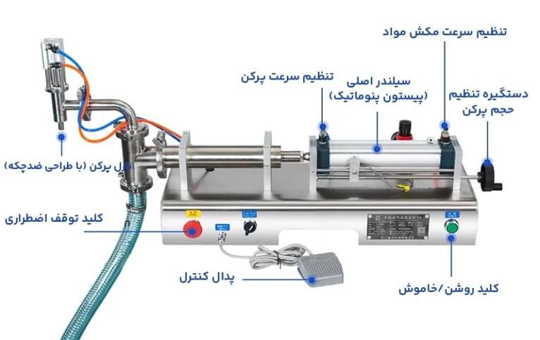دستگاه پرکن مایعات F9 یک پرکن نیمهاتوماتیک تخصصی برای بستهبندی انواع مایعات رقیق و نیمهغلیظ در حجمهای ده تا صد میلیلیتر است. این مدل با استفاده از سیستم مکش مستقیم از مخزن اصلی، بدون نیاز به مخزن داخلی کار میکند و مایع را بهصورت کاملاً بهداشتی از طریق شلنگهای فودگرید وارد مسیر تزریق مینماید. همین ویژگی باعث میشود برای خطوطی که از بشکههای بزرگ، مخزنهای ۲۰ تا ۵۰۰ لیتری یا سیستمهای ذخیرهسازی مرکزی استفاده میکنند، گزینهای دقیق، سریع و بدون دردسر باشد. نیروی محرک دستگاه از سیستم پنوماتیک پیستونی تأمین میشود؛ ساختاری که دقت حجمدهی، تکرارپذیری و طولعمر دستگاه را تضمین میکند. کاربر میتواند ظرف را زیر نازل قرار داده و با پدال یا حالت اتوماتیک عملیات پر کردن را آغاز کند. شاسی و قطعات در تماس با مایع از استیل ۳۰۴ ساخته شدهاند تا مقاومت در برابر خوردگی، شویندهها و مواد بهداشتی حفظ شود. بهدلیل ابعاد جمعوجور و مصرف برق تکفاز، دستگاه برای کارگاههای کوچک، واحدهای تولیدی متوسط و خطوط صنایع آرایشی، غذایی و شیمیایی کاربرد مناسبی دارد. کاربردهای دستگاه پرکن مایعات پنوماتیک دارای سیستم مکش از مخزن اصلی در صنایع مختلف F9 بهخاطر ظرفیت ۱۰ تا ۱۰۰ میلیلیتر برای محصولاتی که در بستهبندیهای کمحجم عرضه میشوند ایدهآل است؛ محصولاتی مانند شیشههای کوچک آرایشی، قطرهها، تونرها، نمونههای تولیدی، محصولات تستشو و مایعات تخصصی مناسب است. مکش مستقیم باعث میشود در خطوطی که مخزن جداگانه دارند، هیچ ریسک آلودگی یا انتقال اضافی وجود نداشته باشد. صنایع غذایی: عصارههای گیاهی، عرقیات سبک، سسهای رقیق، آبلیمو، آبغوره، شربتهای سبک صنایع آرایشی و بهداشتی: تونر، اسانسهای رقیق، میسلار واتر، لوسیونهای کمحجم، ژلهای رقیق، شویندههای ملایم صنایع شیمیایی: محلولهای رقیق، شوینده، سفیدکنندههای کمغلیظ، محلولهای آزمایشگاهی صنایع دارویی: محلولهای ضدعفونی، شربتهای دارویی، قطرهها و محلولهای نمونهبرداری کشاورزی: کودهای مایع رقیق، محلولهای تقویتی، سموم رقیقشده این مدل برای کارخانههایی که بخشی از محصولاتشان در بستهبندیهای کوچک عرضه میشود گزینهای اقتصادی و دقیق است. طراحی و عملکرد دستگاه پرکن مایعات رقیق پنوماتیک دارای سیستم مکش از مخزن مایع مدل F9 مدل F9 با هدف استفاده در محیطهای کوچک تا متوسط طراحی شده است. دستگاه روی میز کار یا کنار خط تولید نصب میشود و تمام قطعات اصلی آن، شامل مسیر سیال، نازل و بدنه، از استیل ۳۰۴ ساخته شدهاند. این جنس علاوه بر مقاومت بالا، استانداردهای بهداشتی تولید محصولات آرایشی و غذایی را رعایت میکند. سیستم مکش مستقیم باعث میشود دستگاه به مخزن داخلی نیاز نداشته باشد و زمانبرترین بخش سرویس روزانه یعنی شستوشوی مخزن حذف شود. دو حالت کاری پدال برای تولیدهای محدود و تنظیمات اتوماتیک برای تولید پیوسته انعطاف کافی برای انواع کارگاهها را فراهم میکند. عملکرد کمصدای بخش پنوماتیک و مصرف برق تکفاز هم استفاده دستگاه را در محیطهای بدون زیرساخت صنعتی ممکن میسازد. ویژگیهای کلیدی و مزایای فنی دستگاه پرکن مایعات پنوماتیک مدل F9 این دستگاه برای کاربرانی طراحی شده که میخواهند روی حجمهای کم اما دقیق کنترل کامل داشته باشند. سیستم پرکردن کاملا پنوماتیک، نازل تکخروجی ضدچکه و پمپ مکش مستقیم از مخزن اصلی باعث شده عملیات پر کردن حتی در مواد رقیق، چسبنده یا کمی ویسکوز بدون نوسان انجام شود. ساختار دستگاه از استیل 304 تهیه شده تا هم در برابر زنگزدگی مقاوم باشد و هم مناسب کارهای مرتبط با مواد خوراکی و بهداشتی. طراحی مینیمال و کمحجم آن باعث میشود در فضاهای کوچک کارگاه و اتاق تولید نیز بتوانید بدون محدودیت کار را پیش ببرید. محدوده پرکردن ۱۰ تا ۱۰۰ میلیلیتر مدل F9 برای بستهبندیهای کمحجم طراحی شده و حجمی کاملا مناسب برای محصولات آرایشی کوچک، تونرها، محلولهای آزمایشگاهی، ژلها و بستهبندیهای ساشهمانند فراهم میکند. تنظیم حجم روی دستگاه 