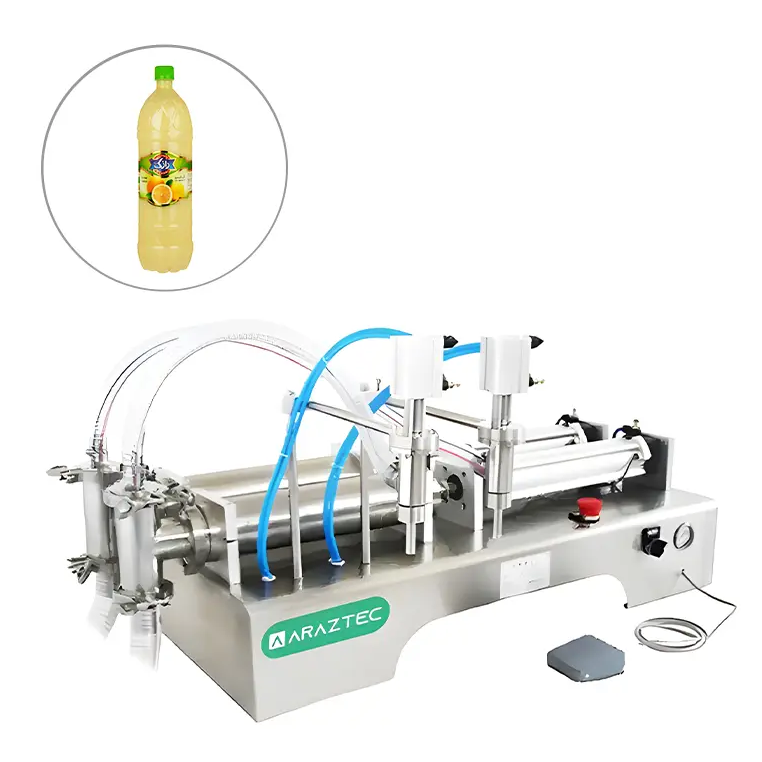 دستگاه پرکن مایعات دو نازله این سری از دستگاه های پرکن مایعات رقیق تا نیمه غلیظ بسیار کارا و دقیق طراحی شده اند این دستگاه ها هیچ نیازی به مکنده خاصی ندارند و خود دستگاه کار مکش را حتی از ارتفاع کم انجام میدهد. این دستگاه مخزن ندارد و مناسب کارهای با حجم بالا می باشد به این صورت که با قرار دادن شلنگ دستگاه در مخزن بزرگ ماده به دستگاه منتقل میشود بدون این که نیازب به پمپ باشد. قابل استفاده برای انواع مواد پزشکی، آرایشی، مواد غذایی، آفتکشها و صنایع دارویی و شیمیایی می باشد. اندازه کوچک، کارکرد آسان، قابلیت تنظیم حجم پرکردن ، سرعت پرکردن قابل تنظیم. پرکردن با دقت بالا، به همراه چکه گیر، بدون نیاز به پمپ مکنده، دارای دونازل که باعث افزایش سرعت تولید می شود.